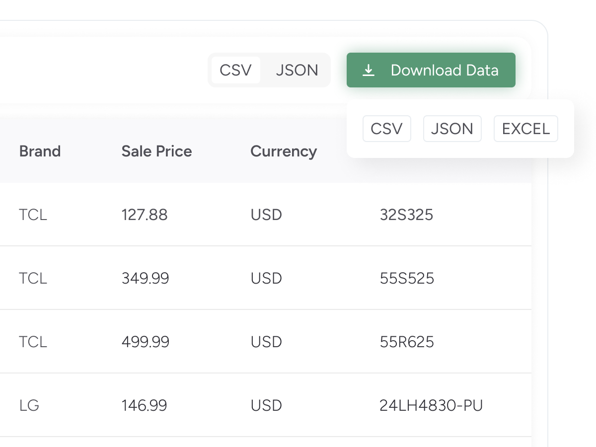Download the data in Excel, CSV, or JSON formats. Link a cloud storage platform like Dropbox to store your data.