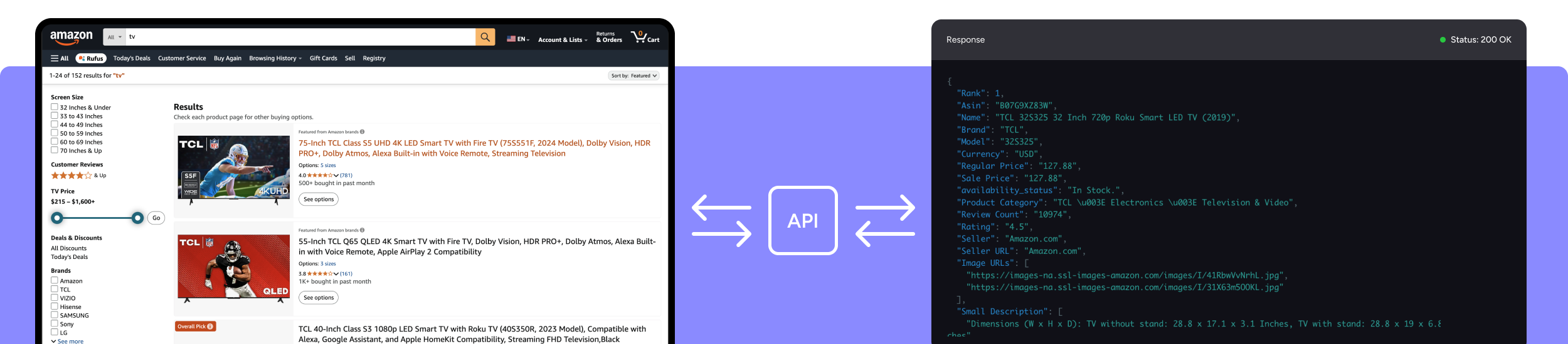 We have a wide variety of Amazon scrapers and Real-Time APIs available in our Marketplace. You can use these web scraping tools to extract more data from Amazon.