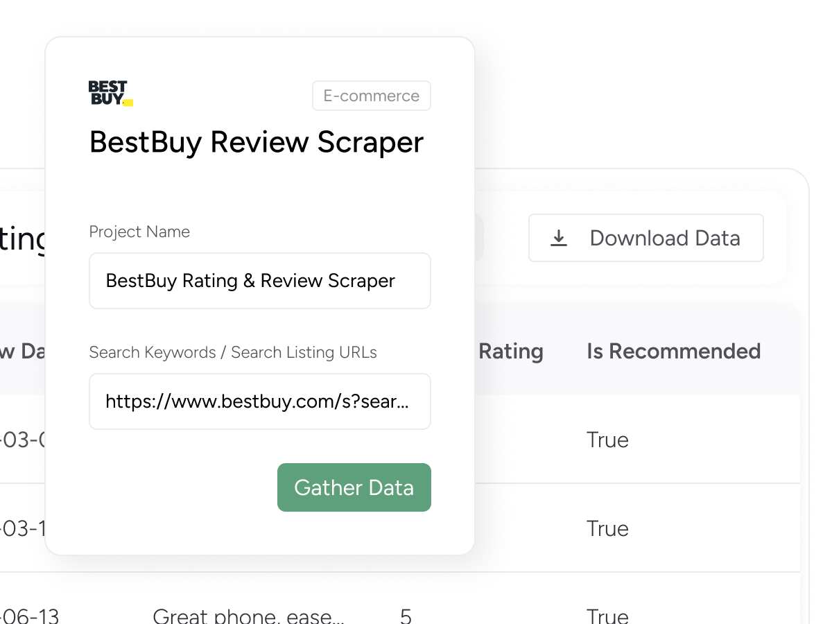 Gather customer reviews for a particular product on Best Buy within minutes. Just provide a product or review URL.
