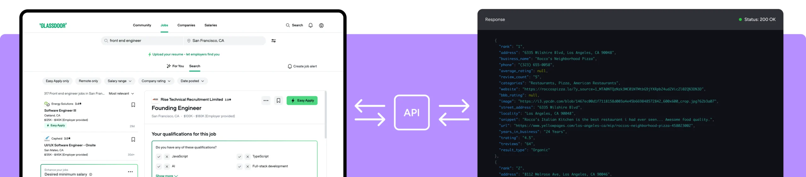 With just a few lines of code, you can integrate our API with your application and start receiving data as a JSON response.