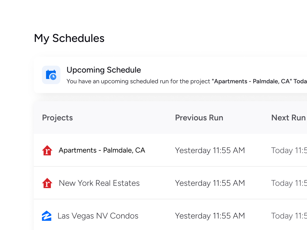 Extract the latest property listings by scheduling the scraper. All you have to do is provide the Realtor search results URL to the scraper