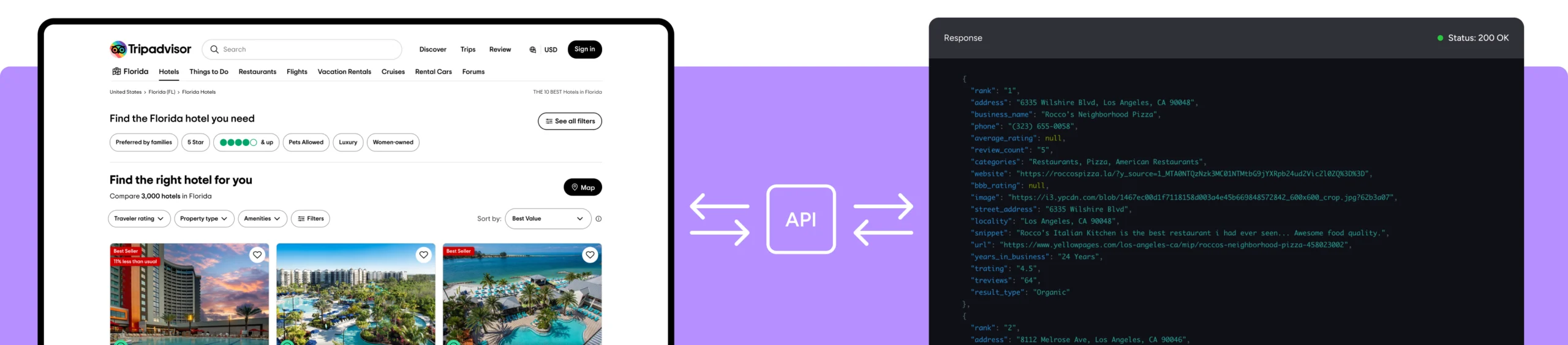 Scrape user review details for hotels such as photos, review ID, review url, and 8+ data points from Tripadvisor in real-time.