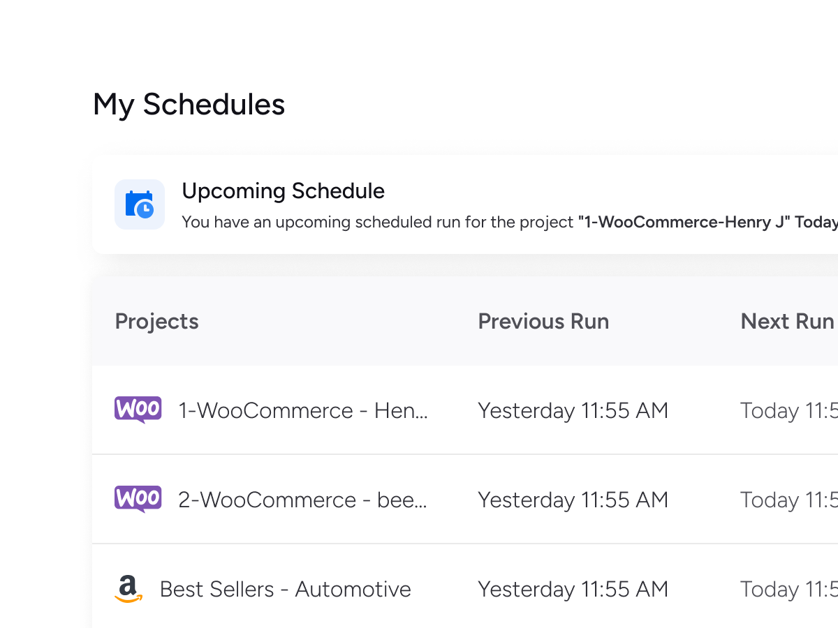 Schedule automated crawls to deliver fresh data to Dropbox, AWS S3, Google Drive, or to your app via API. Choose hourly, daily, or weekly updates to stay current.