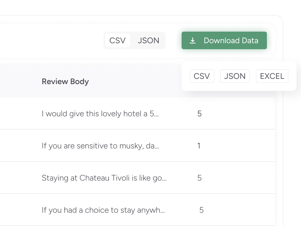Download the data in Excel, CSV, or JSON formats. Link a cloud storage platform like Dropbox to store your data.